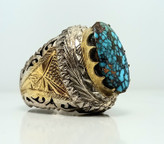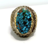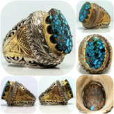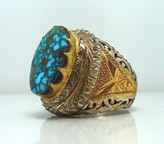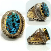 انگشتر فیروزه شجر نیشابوری رگه عنکبوتی آبی کاربنی،ذات سنگ سیاه سنگ،مغز سنگ، نگین کهنه و قدیمی