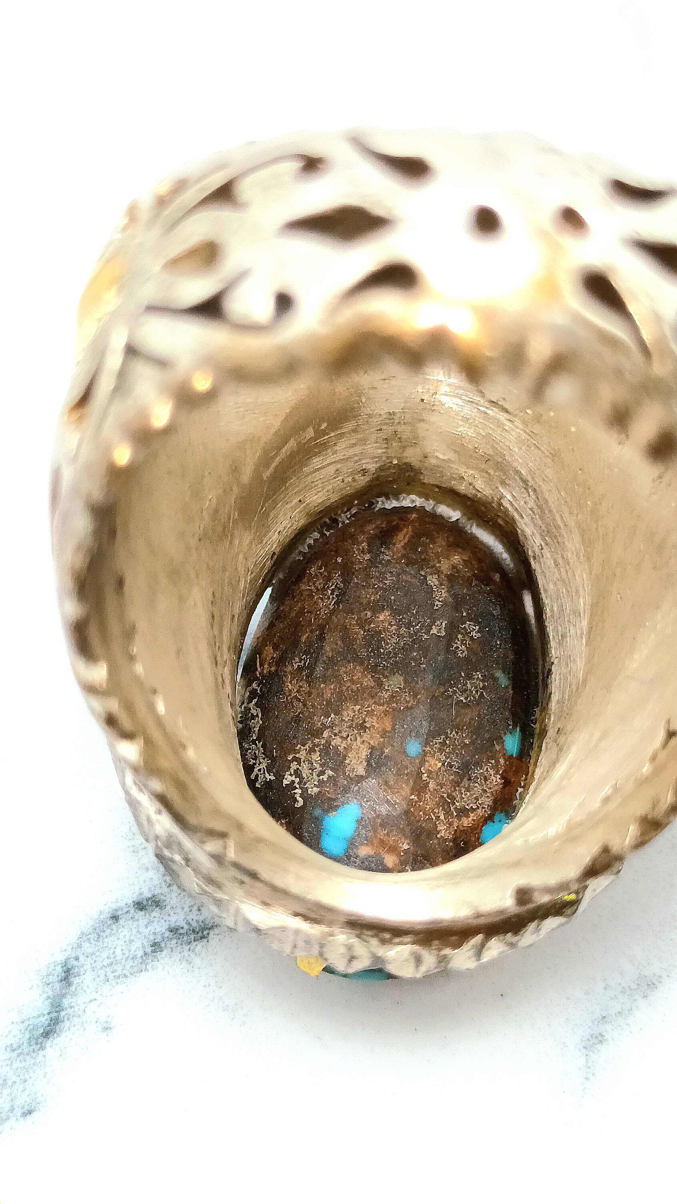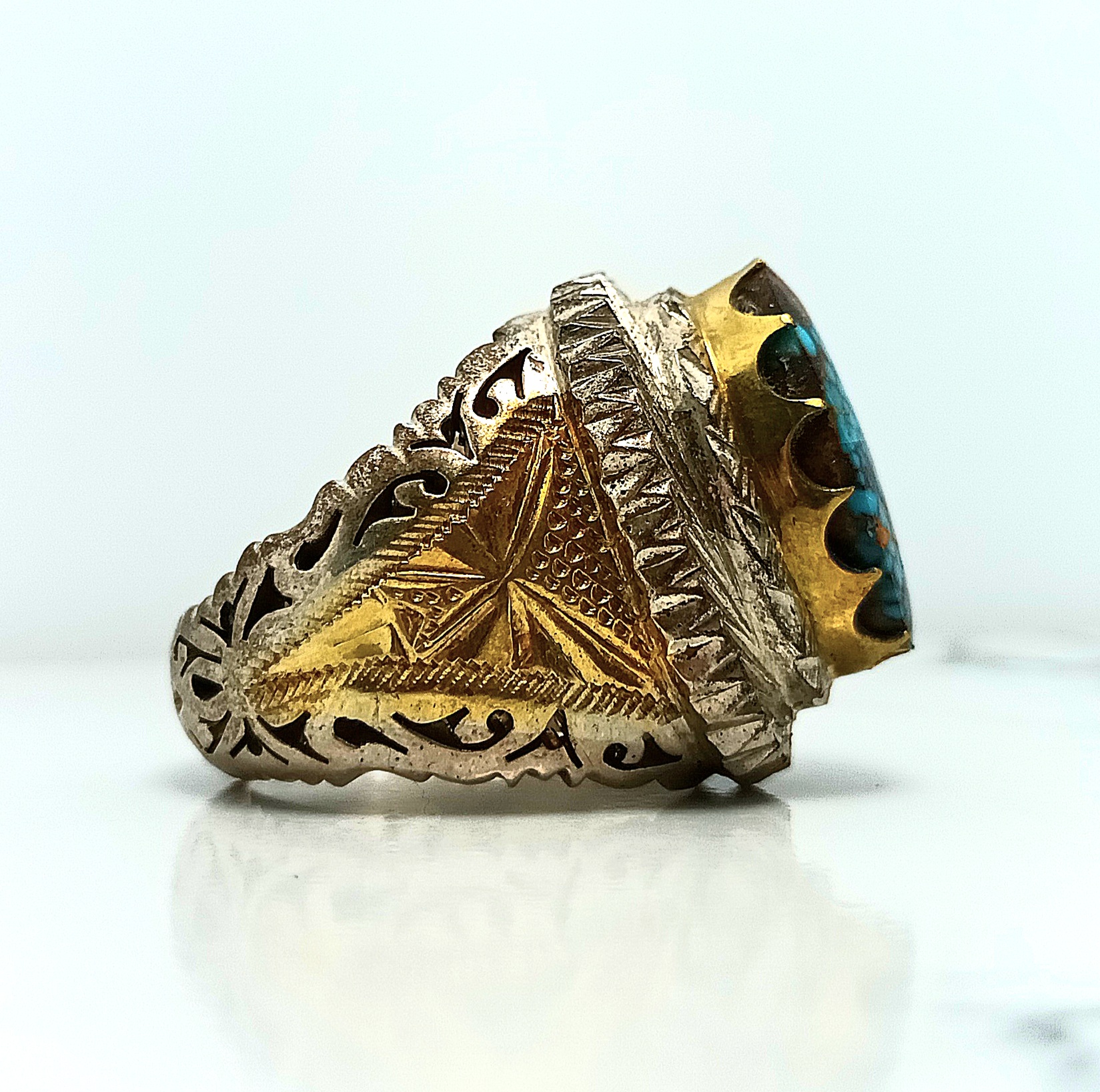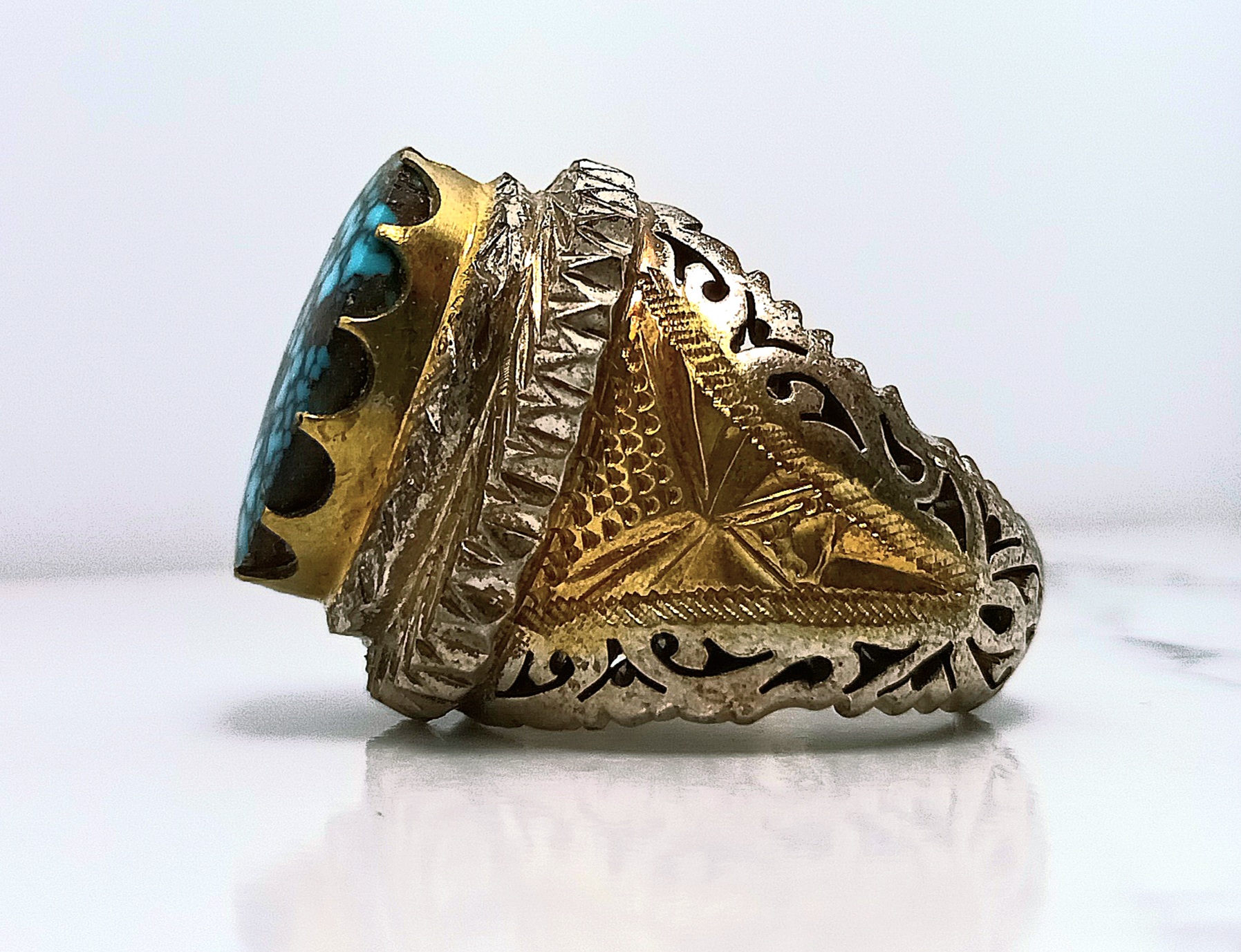انگشتر فیروزه شجر نیشابوری رگه عنکبوتی آبی کاربنی،ذات سنگ سیاه سنگ،مغز سنگ، نگین کهنه و قدیمی