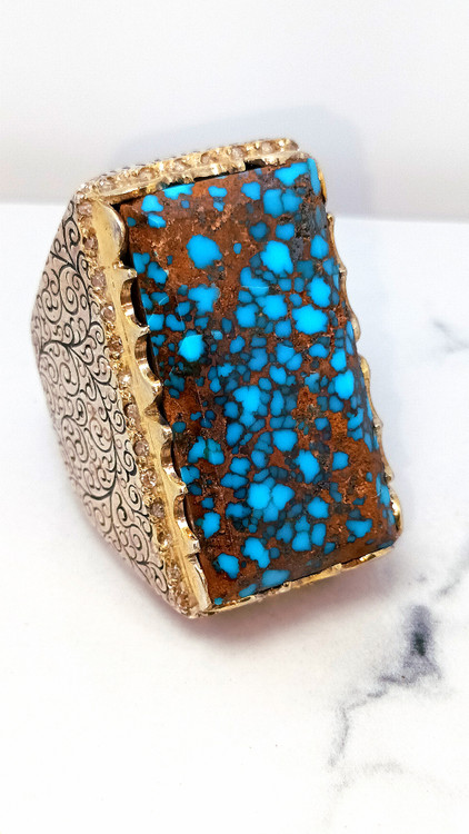 انگشتر فیروزه رگه سرخ کلکسیونی