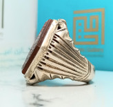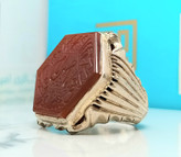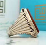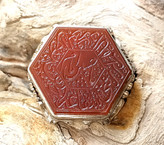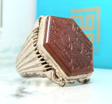 انگشتر عقیق کهنه یمنی،رنگ عقیق سرخ یمنی،تراش ۶ضلعی،ذکر وسط یا امام حسین،ذکر دور الهم ارزقنی شفاعه الحسین یوم الورود،حک کار محسن محرمی