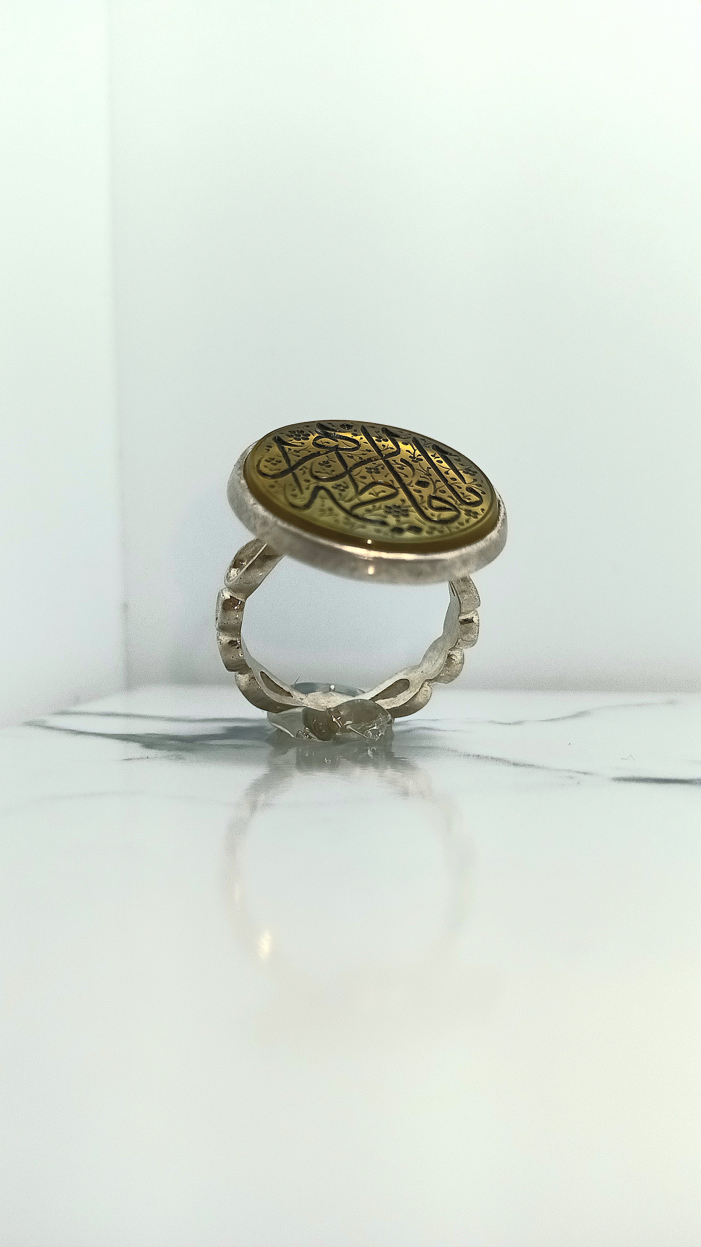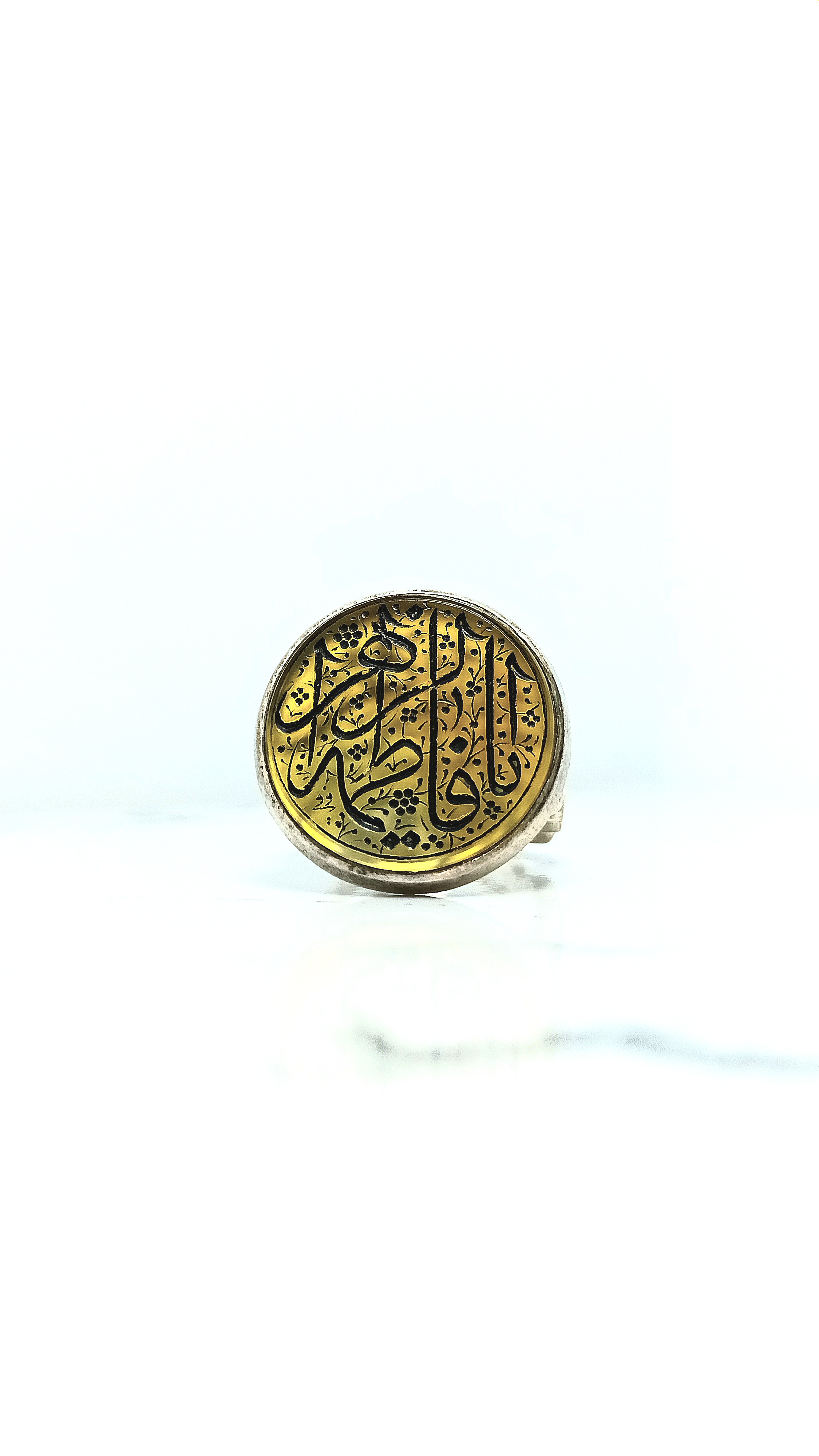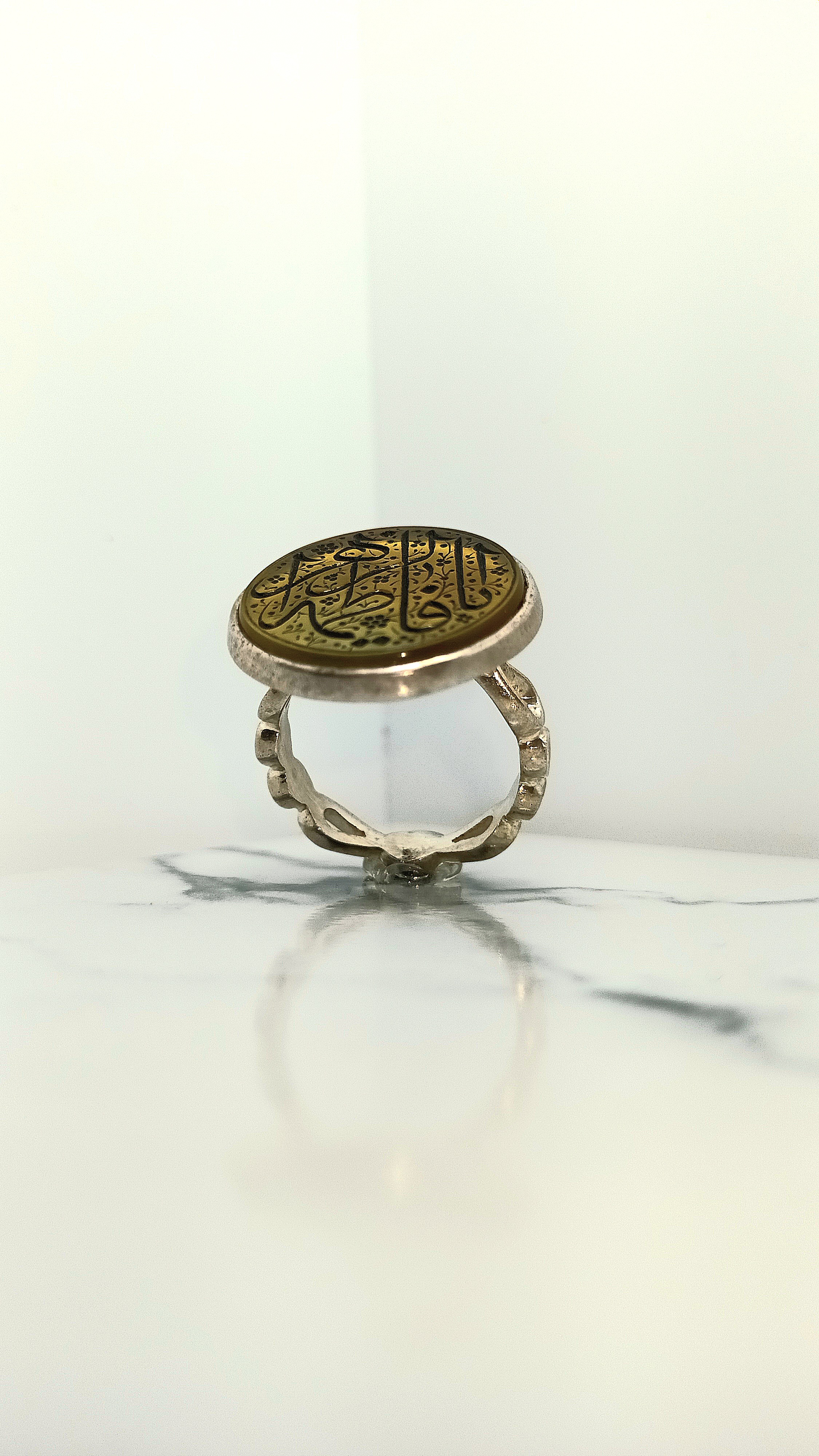عقیق زرد کهنه و قدیمی بدون امضا ، خط قدیمی، ذکر یا فاطمه الزهرا با حرز امام حسین