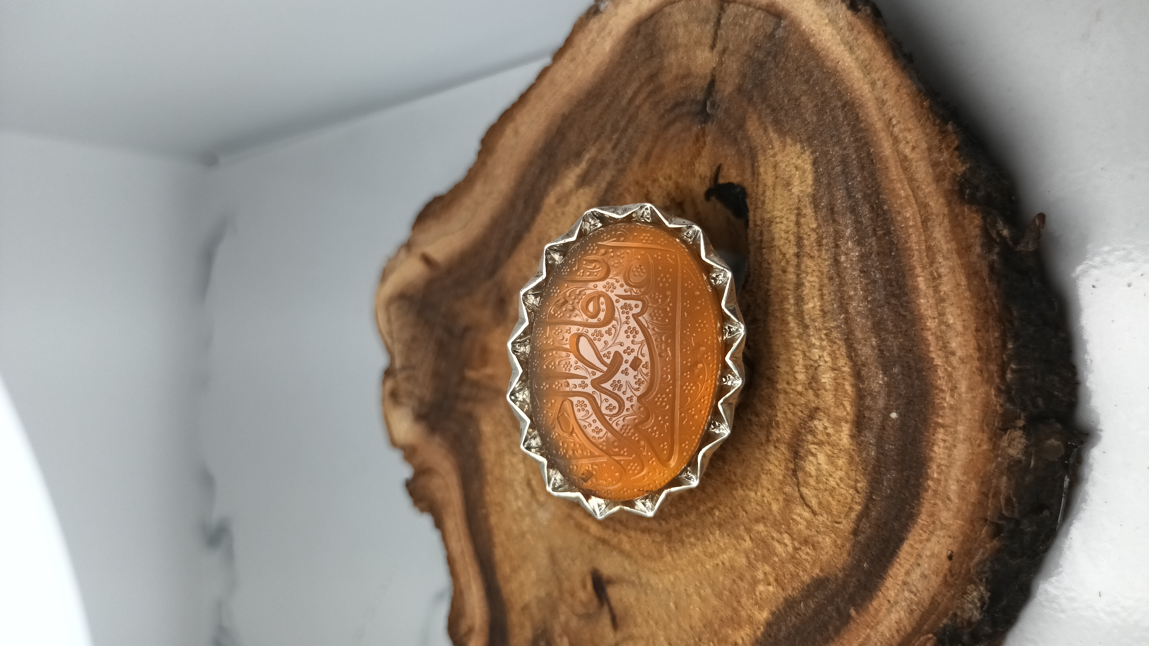 عقیق زرد طبیعی، حکاک استاد جواد، ذکر یا فاطمه الزهرا اغیثینی