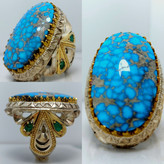 فیروزه شجر با رگه هایی با رنگ خاص، با نقشه منحصربفرد،تراش نیمه دامله،بادومی قواره درشت، کهنه و قدیمی، ذات سنگ سیاه سنگ
