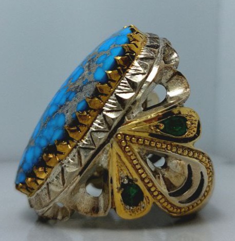 مدل رکاب اشکی دالبوری و آینه کاری شده با دور چنگهای طلایی و منظم و آبکاری طلایی در دو طرف رکاب بر روی الماسهای سبز